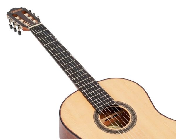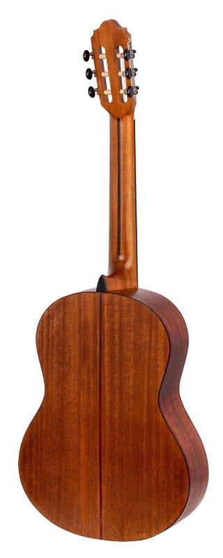 The Solid Sitka Spruce Top, with innovative ToneFlow bracing, gives this guitar an outstanding range that responds to your lightest touch with articulation and detail. Premium Mahogany back and sides enhance low-mid richness. A premium Mahogany neck and Amara Ebony fingerboard deliver exquisite playability. Other features such as exotic wood veneers, inlaid natural wood mosaic rosette and custom decorated machine heads result in a classical guitar that exceeds expectations in looks, tone and feel.
