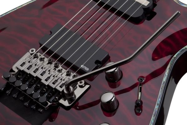 Add a true metal guitar to your collection with the Schecter Hellraiser C-7 FR-S 7-string solidbody electric guitar! This Hellraiser gives you a mahogany body, a quilted maple top, a thin mahogany neck, and a rosewood fretboard that delivers hard-hitting lows and a soaring top end. What’s more, Schecter gave the Hellraiser C-7 FR-S an ultra-cool Sustainiac neck pickup, which lets you pull off flying solos like nothing else out there. Add this to an EMG 81 humbucker and a Floyd Rose tremolo, and you have one mean metal machine.