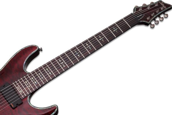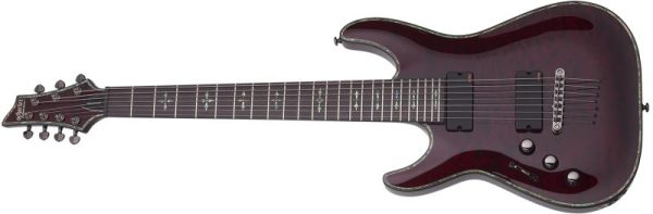 Schecter Hellraiser C-7 left-handed electric guitar, black cherry finish.