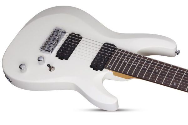 Schecter C-8 Deluxe electric guitar, satin white finish.