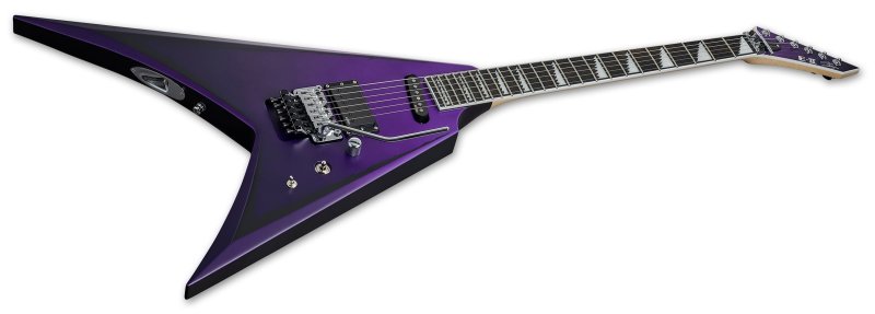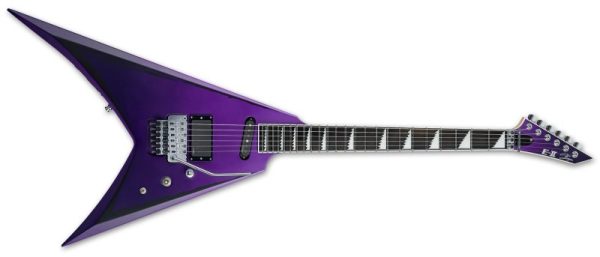 Built at our ESP factory in Japan, the ESP E-II Alexi Ripped is among the final guitars designed by Children of Bodom/Bodom After Midnight frontman Alexi Laiho, one of the world’s most beloved and influential figures in metal music. The E-II Alexi Ripped is offered in an offset V shape with neck-thru-body construction at 25.5” scale. It features a three-piece thin u-shaped maple neck with natural satin finish for smooth and fast playability, alder body wings, and an ebony fingerboard (scalloped from frets 19-24) with 24 extra-jumbo frets, sawtooth inlays, and glow-in-the-dark side markers. The Alexi Ripped model is the first Alexi Laiho Signature Series guitar with more than one pickup. It includes an EMG HZ F-H2 passive humbucker in the bridge position, a ceramic high-gain pickup that offers excellent presence and clarity with a punchy response, as well as an EMG HZ S2 passive stacked single coil in the neck for just the right mix of mids with a clear and full low end. It also includes an ESP MM-04 active boost switch, a preamp circuit with adjustable EQ settings and up to +18dB of boost when you need it! Designed for pro players, the E-II Alexi Ripped includes high-end components such as Gotoh locking tuners, ESP strap locks, a double-locking Floyd Rose Original bridge, and chrome hardware including a volume control, an inset three-way pickup selector, and boost switch. Available in Purple Fade Satin finish with painted black satin “ripped” pinstripes, with black satin back and sides. Includes deluxe ESP hardshell case.