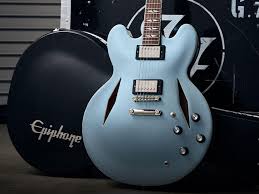 Epiphone Guitare électrique DG-335 signature Dave Grohl avec étui rigide – fini bleu Pelham