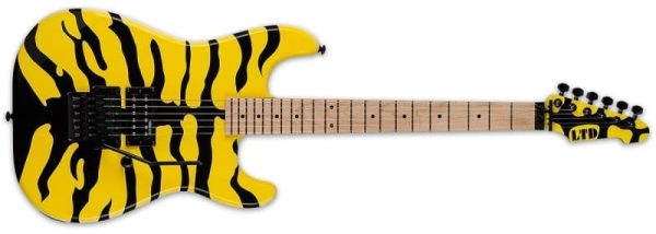 Based on one of iconic guitarist George Lynch’s most recognized ESP Custom guitars, the LTD GL-200MT is an affordable version of the famous M-1 Tiger that Lynch used in Dokken and at many points in his storied career. It features a basswood body in yellow finish with a tiger stripe graphic, bolted to a maple neck with a 22-fret maple fingerboard. This guitar is powered by a single ESP Designed LH-150B humbucker in the bridge position, and includes a Floyd Rose Special bridge.