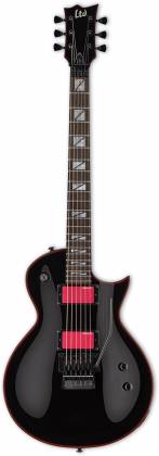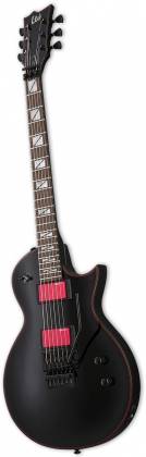 The LTD GH-200 represents the most affordable model in the Gary Holt Signature Series, but it packs a mean punch. It includes bolt-on constuction, with a comfortable basswood body and a thin U-shaped maple neck, with a roasted jatoba fingerboard that gives you Gary’s split rectangle inlay design and 22 extra-jumbo frets. The GH-200 also offers an ESP Designed LH-301 pickup set with red covers, a Floyd Rose Special bridge for your most outrageous leads, and red binding on the body and headstock to complete its menacing vibe. Available in Black finish.