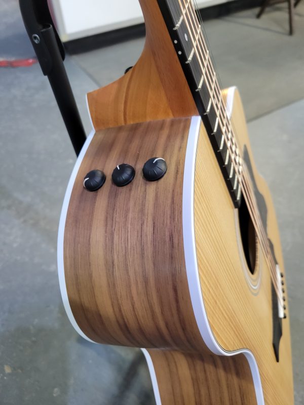 Les guitares Grand Auditorium de la série 200 ont toujours été un succès auprès des joueurs de tous les niveaux et de tous les styles. La dernière édition de la 214ce apporte une sonorité acoustique plus nette et une sensation de douceur que les musiciens attendent d’une Taylor. Le fond et les éclisses sont ici en palissandre indien stratifié, avec une table d’harmonie en épicéa de Sitka massif qui permet à cette guitare de produire des aigus vibrants et un grave chaud et résonnant. Cet équilibre tonal fait de cette guitare un outil musical polyvalent, suffisamment souple pour produire de puissants accords de cow-boy et suffisamment articulé pour être utilisé dans des styles plus subtils, comme le flatpicking ou le fingerpicking. Les rendez-vous comprennent une reliure blanche impeccable, une rosette à trois anneaux et une découpe vénitienne pour un accès facile aux notes les plus aiguës sur le manche. La guitare est livrée avec un système électronique ES2 pour un son organique et propre dans les situations amplifiées, et est livrée avec un sac de transport rembourré et robuste.