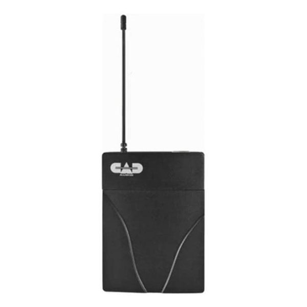 The TX1610 UHF Bodypack Transmitter from CAD Audio is designed for use with the RX1600 receiver. The transmitter features a 4-pin connector for connecting a compatible microphone or instrument cable, a SoftTouch power switch for on/off and mute/unmute functions, a tri-color LED indicator for audio and battery status, as well as an infrared node for Scan-Link operation. The transmitter is powered by two AA batteries for about 15 hours of operation.