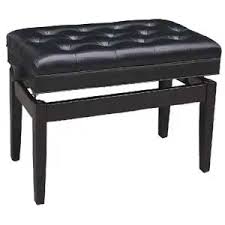 Banquette de piano, assise en similicuir rembourrée de mousse, pied / cadre en bois, compartiment à musique.